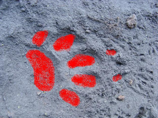 Comentário : Na pegada do Texugo ( Meles meles), fica definido cinco dedos alinhados, almofada palmar redonda, entre 6 a 5 cm, geralmente tem unhas bem marcadas um pouco á frente. Para tentarem visualizar . . . . .