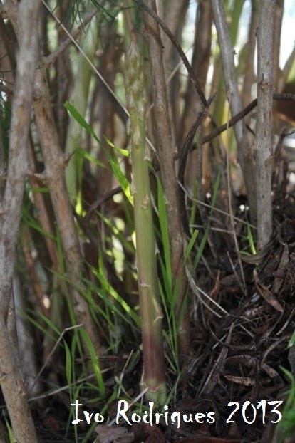 Arranjam-se os espargos, cortando-os fininhos, numa frigideira aquece-se azeite, quando estiver bem quente, colocam-se dentes de alho até aloirarem, nessa altura acrescentam-se os espargos para lhe dar uma “entaladela”, reserva-se.