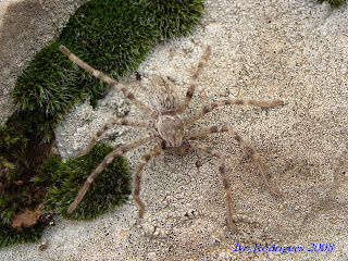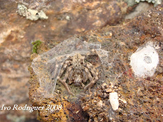 Comentário : Reparem no saco de ovos que tem atrelado, é uma das maiores aranhas ibéricas. Fotografia tirada em Setembro de 2009